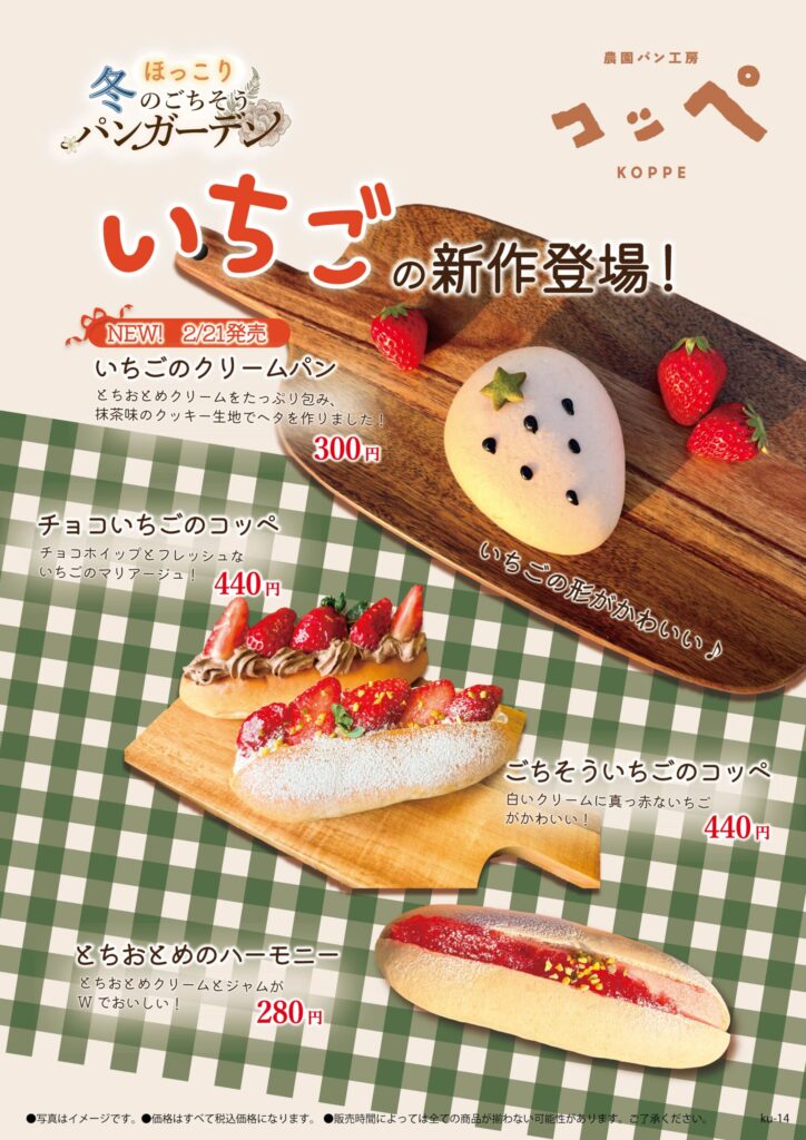 また、いちごフェアに合わせて農園パン工房コッペではいちごの形がかわいいいちごのクリームパンを発売!