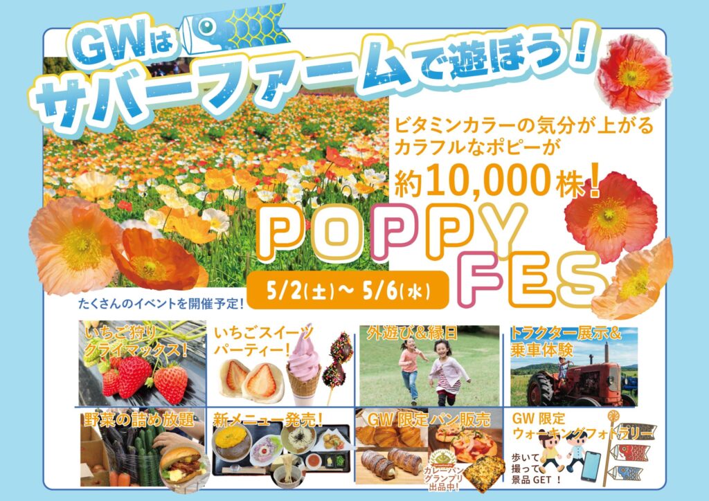 お花畑に約1万株のポピーが咲き誇る!他にも様々なイベントを開催いたします!