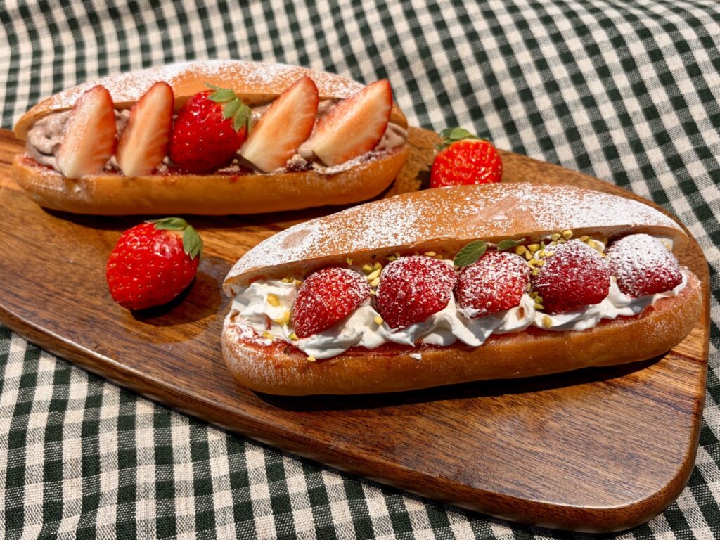 農園パン工房コッペの新作いちごを使ったコッペや、大人気の食パン「角もっち」が入ったお得なパンの福袋を販売いたします。数量限定ですのでお早めにご来店ください。(各日ご用意がございます)