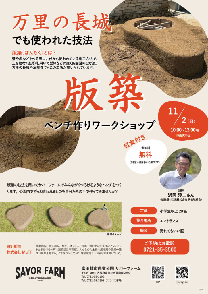 万里の長城でも使われた伝統的な土を突き固める技法「版築(はんちく)」を使って、サバーファームでみんながくつろげるようなベンチやテーブルを作ります✨ 土の重なりや色の違いが見える、唯一無二の作品づくりを体験できます!