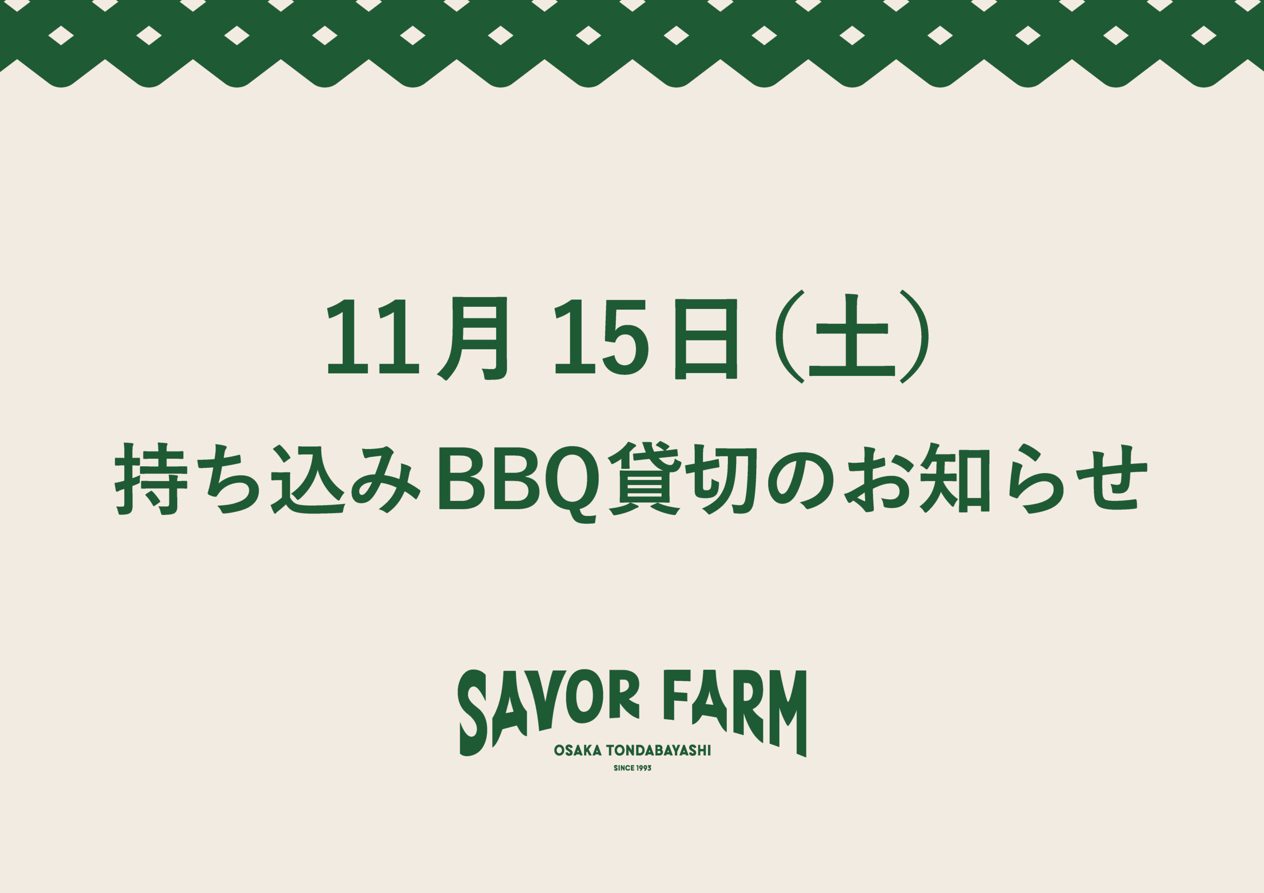 【持ち込みBBQ】11月15日貸切のお知らせ